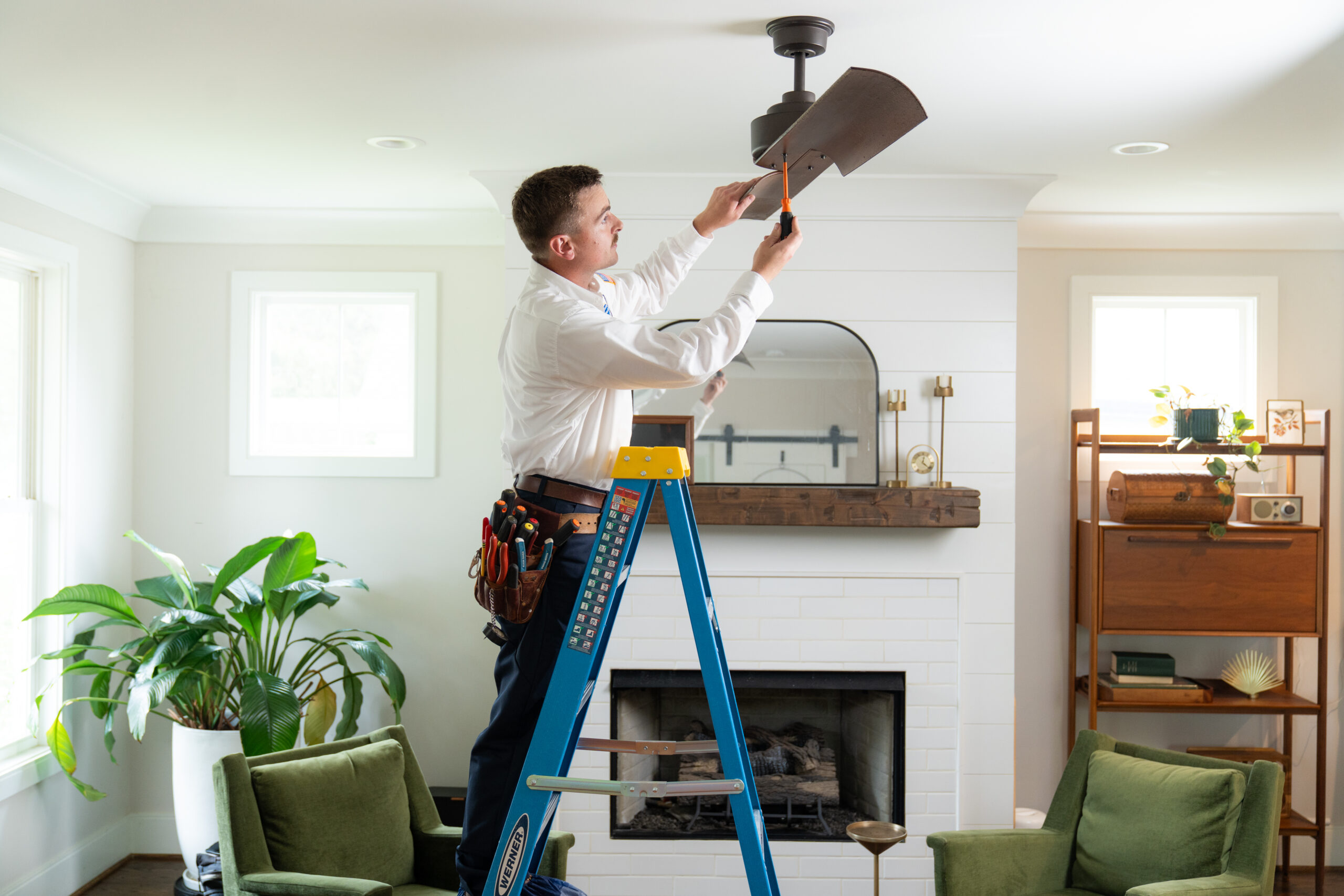 That’s where our licensed electricians come in. Don’t put yourself through the hassle of a DIY project. Let us take care of the hard work and heavy lifting so you can relax and enjoy your new light, chandelier, or ceiling fan!